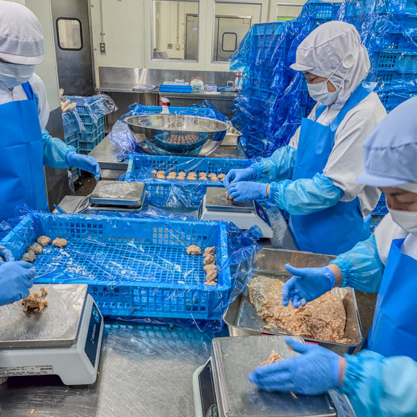 私たちはお肉屋さんではありません。私たちが扱うのは「加工したお肉」。その一つひとつが、学校や施設の現場でスムーズに調理されるよう、加えて食べやすいように切り方や形状、使いやすさに徹底的にこだわっています。